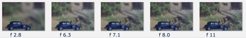 NB bij lens openingen is de Grootste lensopening helemaal rechts te zien en de kleinste helemaal links.