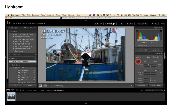 Vervolgens kan een een bewerkingsprogramma (Camera RAW / Adobe Lightroom / Cature One) de kleur van de afbeelding (DNG/PEF formaat) worden aangepast.