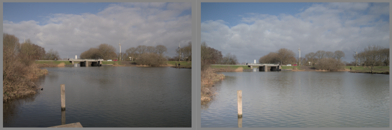 Linker foto zonder ND Grijsflter, Rechts MET nd verloopfilter..